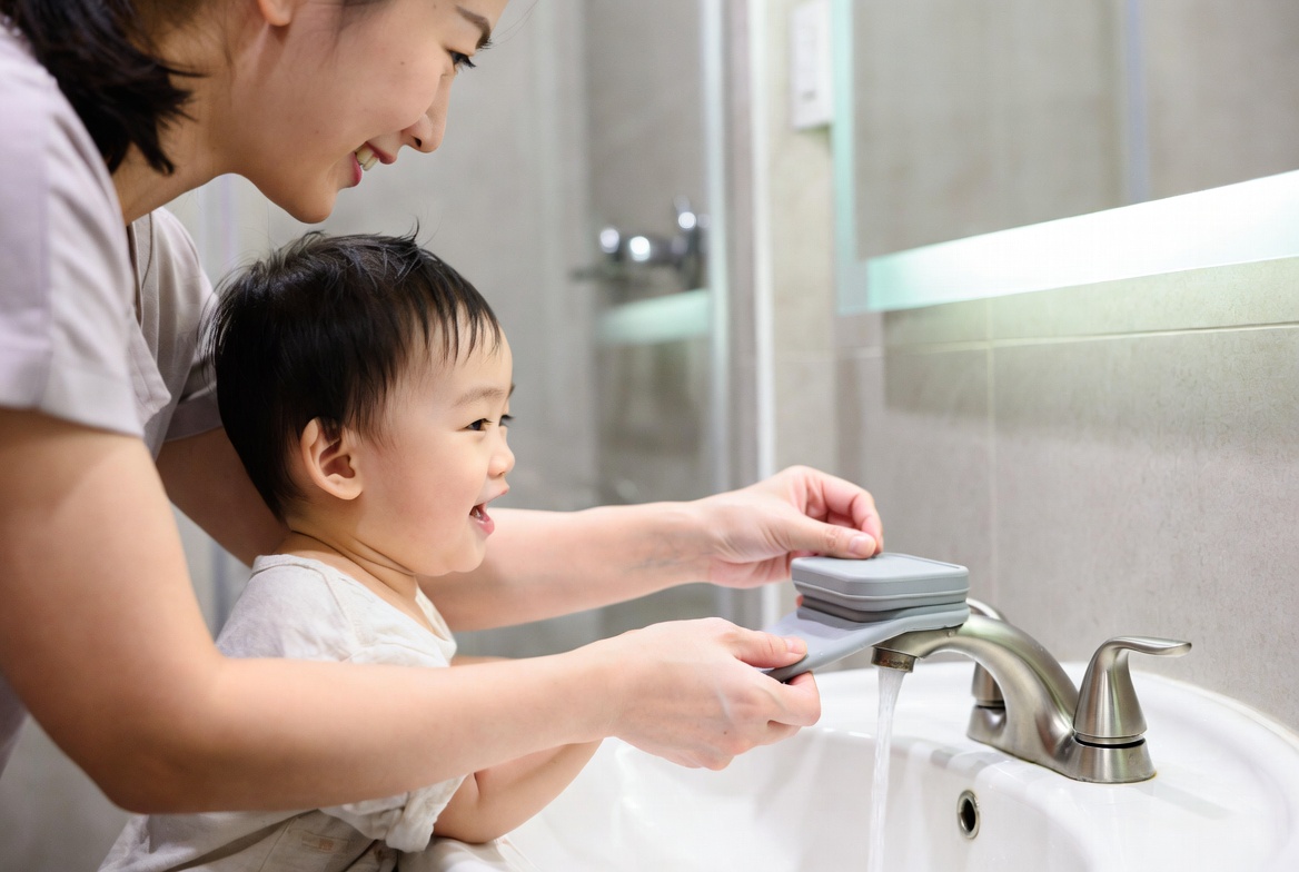 Los extensores de grifo permiten que los niños lleguen al agua sin dificultad, facilitando tareas básicas como lavarse las manos o los dientes.