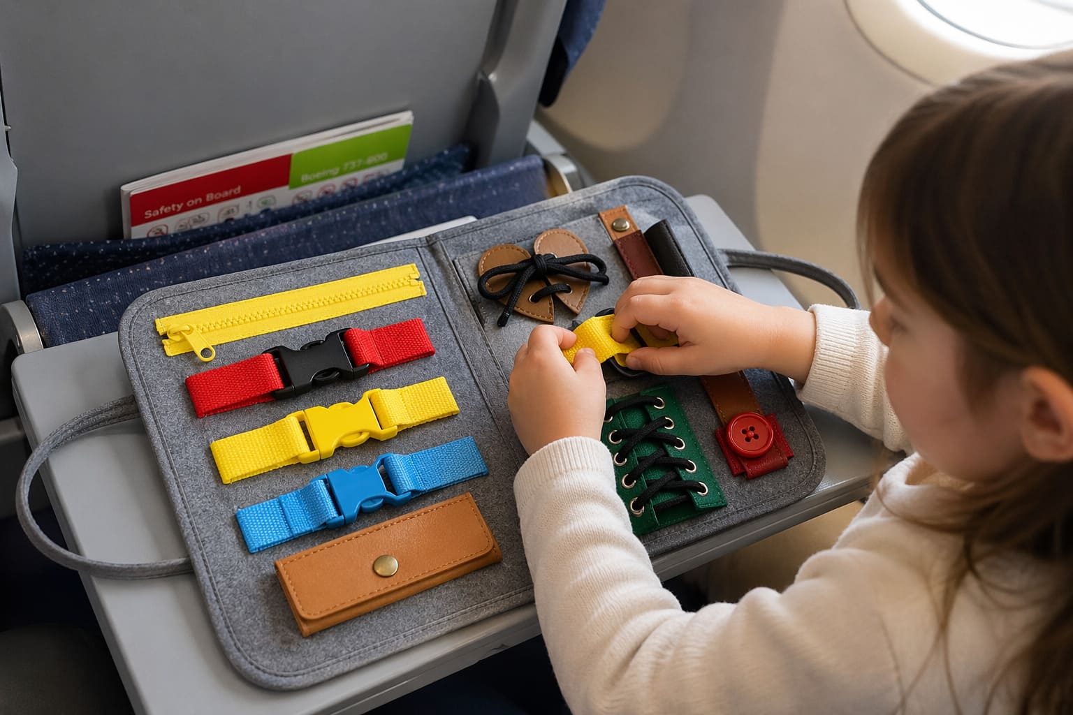 Los viajes largos pueden convertirse en una oportunidad perfecta para estimular el aprendizaje si se eligen los juguetes adecuados. Entre las opciones más eficaces destacan los tableros Montessori, conocidos como Busy Board Montessori, que incluyen cremalleras, botones, cordones y hebillas diseñados para mejorar la coordinación y la motricidad fina. Este tipo de juego permite que el niño experimente distintas acciones con sus manos, lo que favorece la concentración y la autonomía durante trayectos prolongados. La variedad de actividades presentes en un solo objeto evita la monotonía y mantiene el interés activo durante más tiempo.